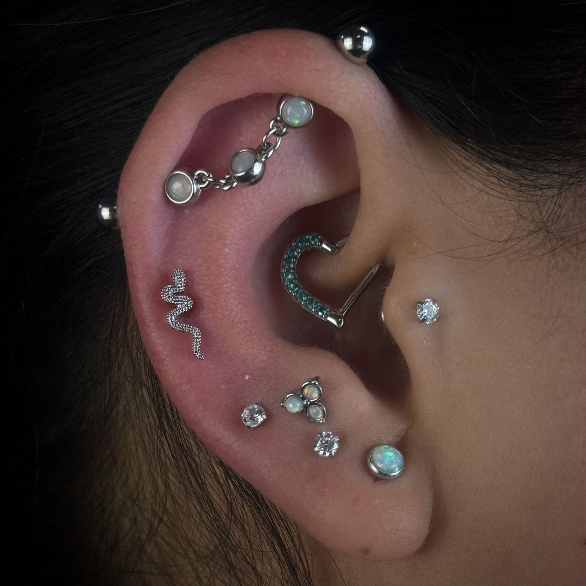 Here at Inkspirations Tattoo & Piercing we offer most piercings for all women and men! All of our jewelry is either high grade steel or Titanium packaged and sterilized prior to piercing procedure. Basic jewelry is included in the procedure. Choose from a variety of Jewelry styles like hoops, studs, Opals from Brazil and more ! Contact us or come on in APPOINTMENT ONLY.